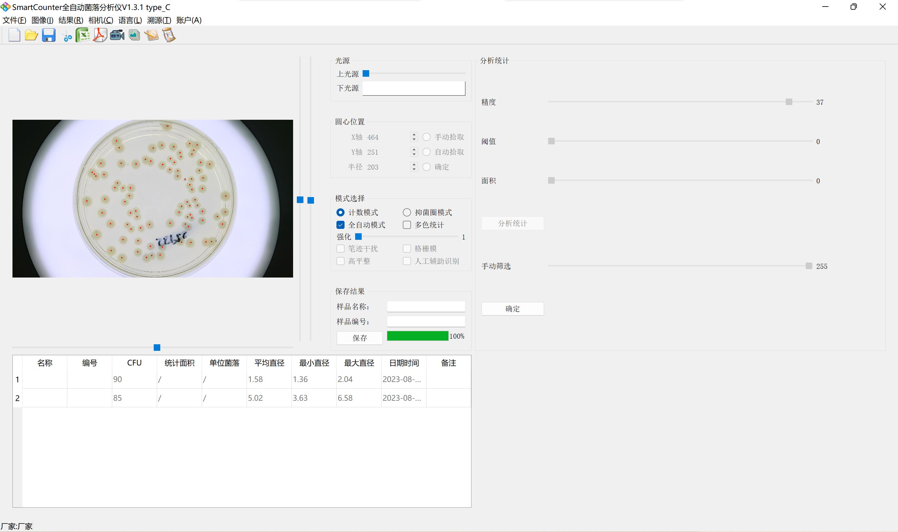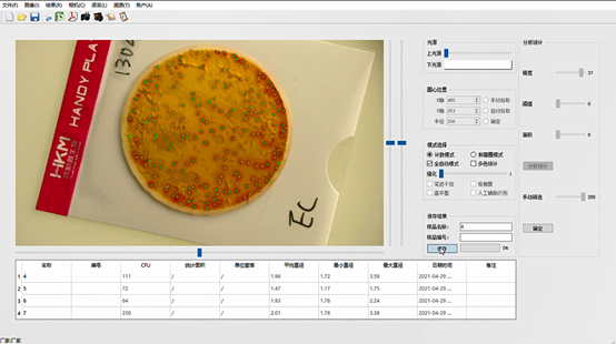 7)可通過設(shè)置顏色適應(yīng)、菌落比、菌落直徑設(shè)置,提高計數(shù)精確度。